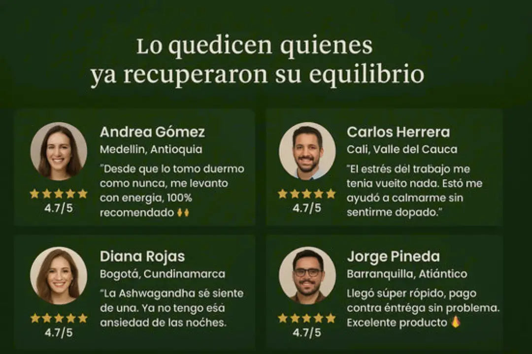 No. Es un suplemento natural adaptógeno, lo que significa queno genera dependencia, tolerancia ni síndrome de abstinencia. Puedes suspenderla cuando quieras sin efectos negativos.